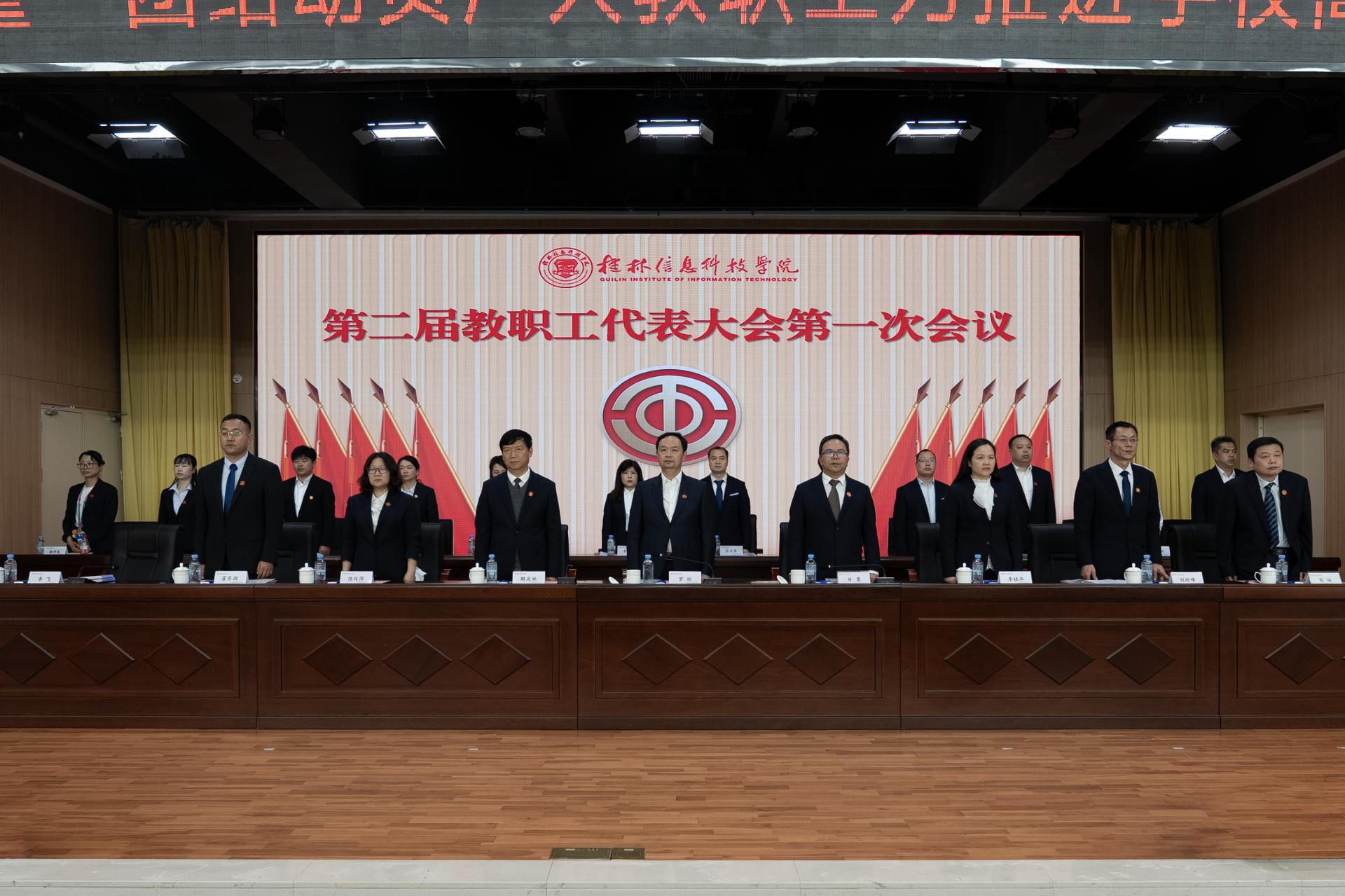 4月2日,桂林信息科技学院第二届教职工代表大会第一次会议在F107报告厅隆重召开。学校董事长罗欣出席大会并讲话,校领导甘勇、解庆林、李桂华、陈玲萍、刘跃峰、李飞、霍东渤、周璇出席大会,132名正式代表、9名列席代表齐聚一堂,共商学校发展大计,共谋高质量发展新篇。大会由学校党委副书记、工会主席李飞主持。