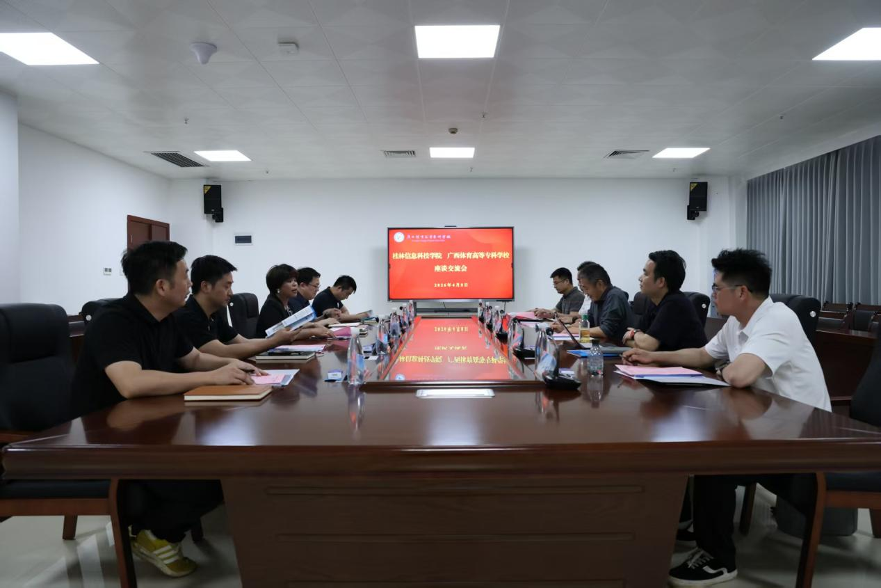 李飞副书记对广西体育高等专科学校的热情接待表示感谢,并围绕桂林信息科技学院的办学历史、办学特色、学科专业建设及人才培养情况作了介绍。他表示,学校可在专升本基础课程建设、人才培养对接衔接、学科竞赛以及加入全国运动健康产教融合共同体等方面,与广西体育高等专科学校深入交流,两校优势互补性强,合作契合度高,愿共同为体育人才培养携手深度合作。周勇院长就体育与健康学院的师资、专业、场馆及实验室建设进行了图文展示和阐述。