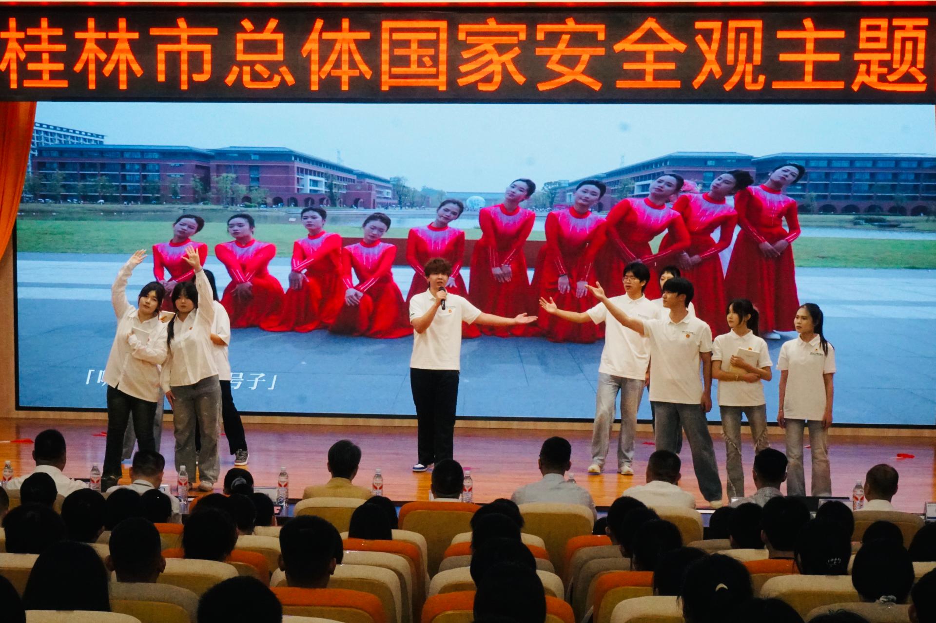 为深入学习贯彻总体国家安全观,切实提升团员青年和少先队员的国家安全意识,4月14日,由中共桂林市委国安办、共青团桂林市委员会、桂林市国家安全局、桂林市教育局联合主办,桂林信息科技学院承办的“统筹发展和安全 护航‘十五五’新征程”主题团队日活动在桂林信息科技学院G105报告厅举行。中共桂林市委国安办、桂林市国家安全局相关同志,共青团桂林市委副书记谢明艳,桂林市教育局团工委专职副书记李嘉豪,我校党委书记甘勇,党委副书记李飞,纪委书记、校长助理周璇以及来自全市高校、中小学、企事业单位等各领域的280余名团员青年、少先队员代表参加活动。