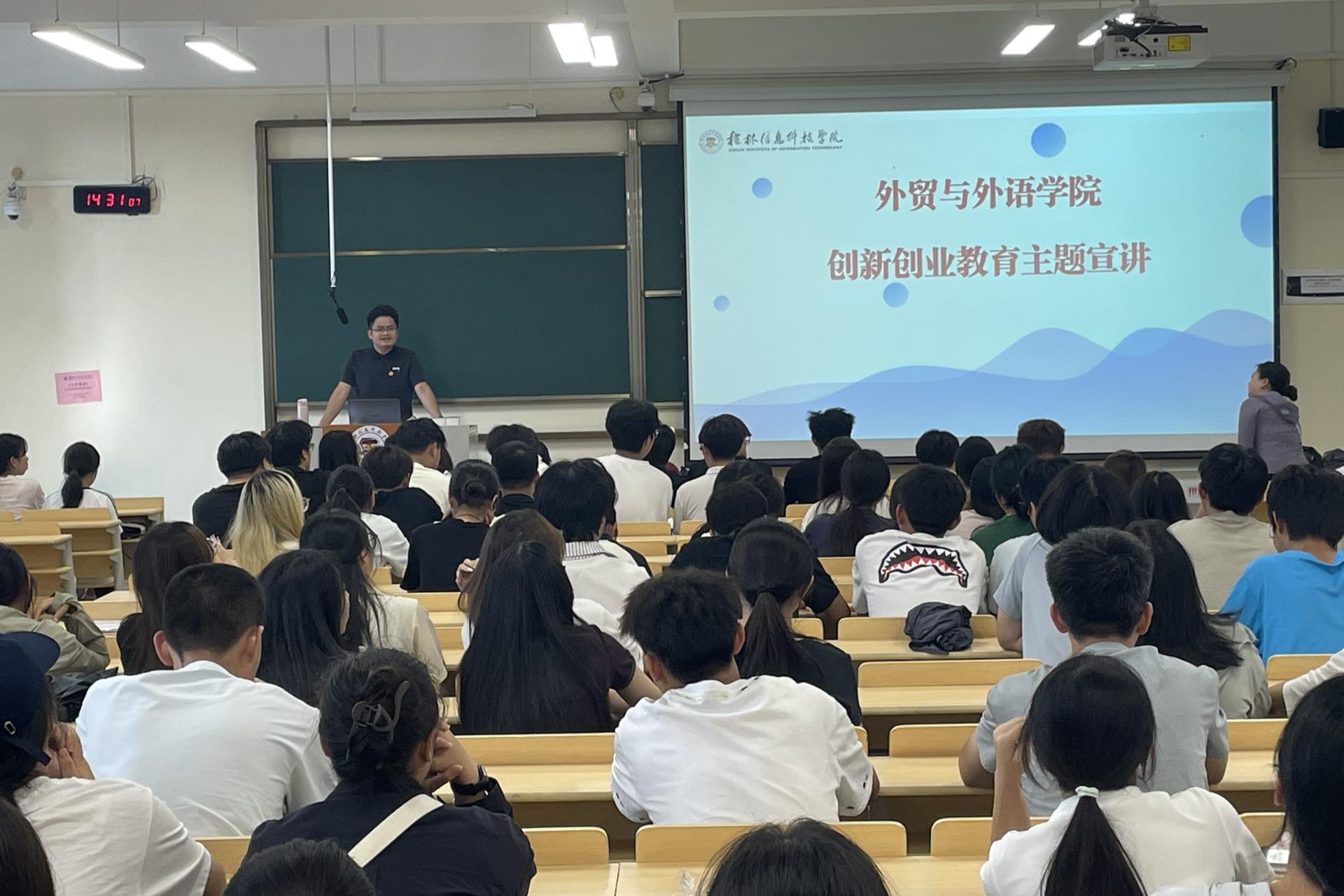 为深化创新创业教育改革,激发2025级新生创新活力与创业热情,10月17日下午,外贸与外语学院在D206教室召开“新生创新创业教育第一课”。副院长赖安老师、实践教研室主任农方老师及2025级全体新生共话“双创”。