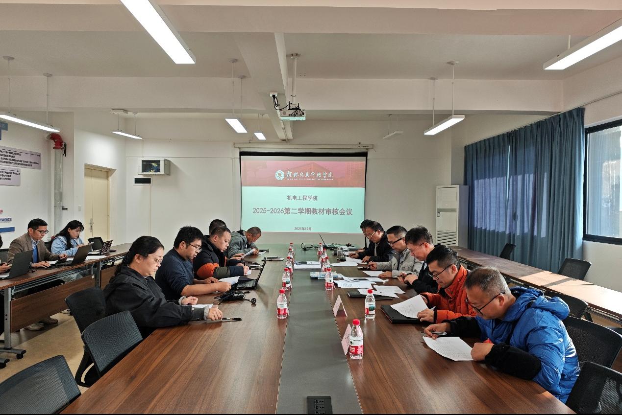 为全面提升教学质量、规范课程建设,12月9日,机电工程学院召开2025-2026学年第二学期教材审核专题会议。会议由副院长冯翠云主持,特邀学校党委书记甘勇教授担任评审专家,学院教材审核领导小组成员参会,围绕教材审核、课程建设优化及教学保障等关键议题展开深入研讨。