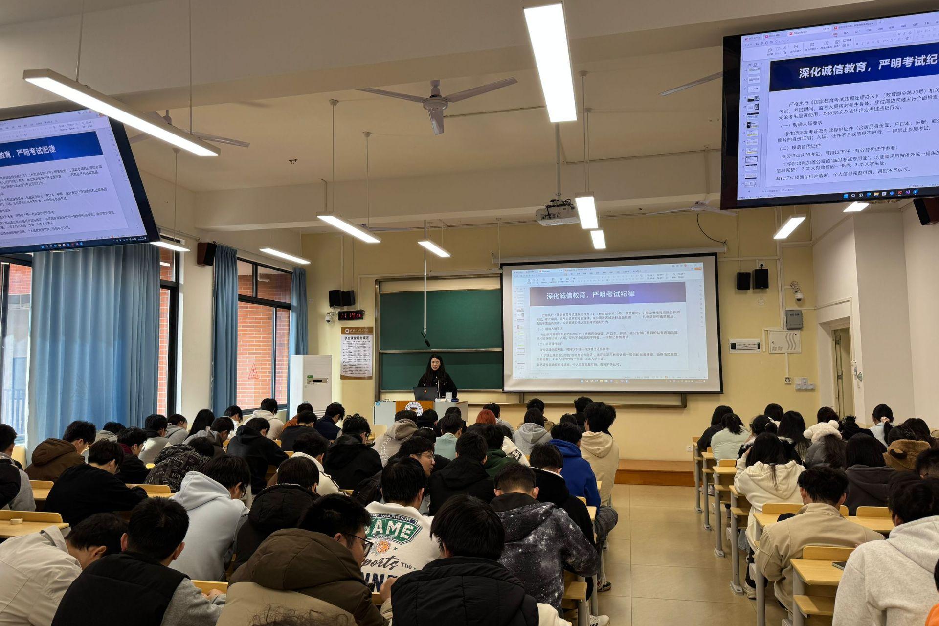 考风考纪建设是学院学风建设与育人工作的重要环节。电子工程学院始终坚持“教育为先、预防为主、严肃执纪”的原则,对考试违纪行为保持“零容忍”态度。此次主题班会的顺利开展,不仅增强了学生的诚信意识和纪律观念,也展现出电子工程学子诚实守信、严谨求实的优良风貌。
