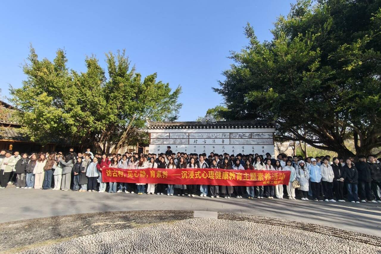 为帮助学生构建积极心理品质、拓展实践育人路径,12月14日,机电工程学院组织学生前往桂林市东漓古村景区,开展了一场融合自然疗愈与团队协作的沉浸式心理健康教育主题活动,以创新形式助力学生心理健康成长。