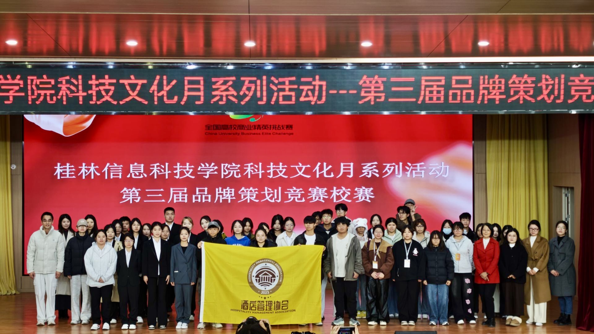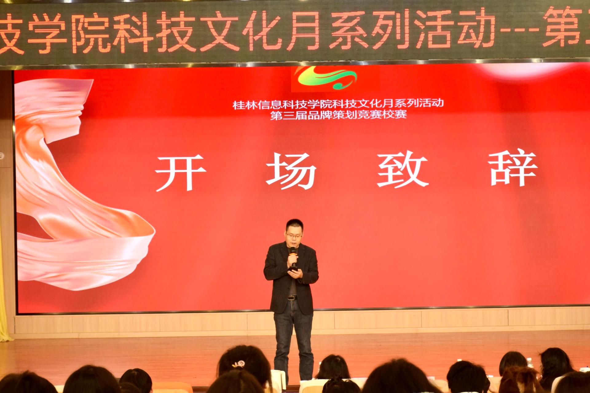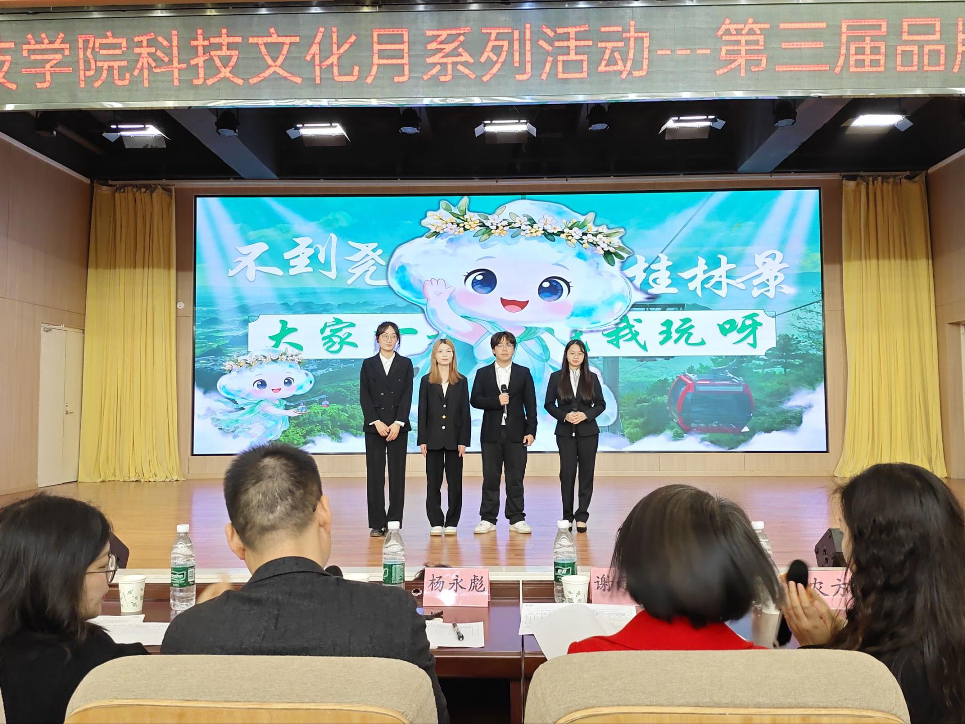 12月6日,学校科技文化月系列活动——桂林信息科技学院第三届品牌策划竞赛校赛暨2026年全国高校商业精英挑战赛品牌策划竞赛全国总决赛校内选拔赛在F107报告厅顺利举行。桂林旅游学院谢雨萍教授、外贸与外语学院酒店管理教研室杨永彪博士、酒店管理教研室主任黄艳老师、实践教研室主任农方老师担任本次大赛的评委,为赛事专业把关。