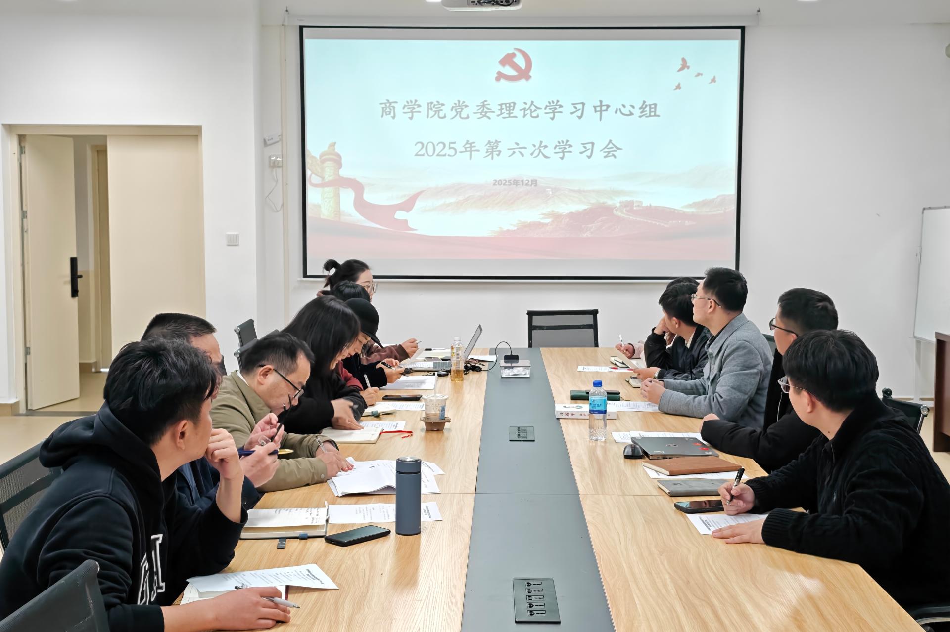 12月19日,商学院党委理论学习中心组在汇通楼H612召开2025年第六次学习会议。会议由学院党委书记许奇主持,党委理论学习中心组成员、各党支部书记及组织员参加学习。