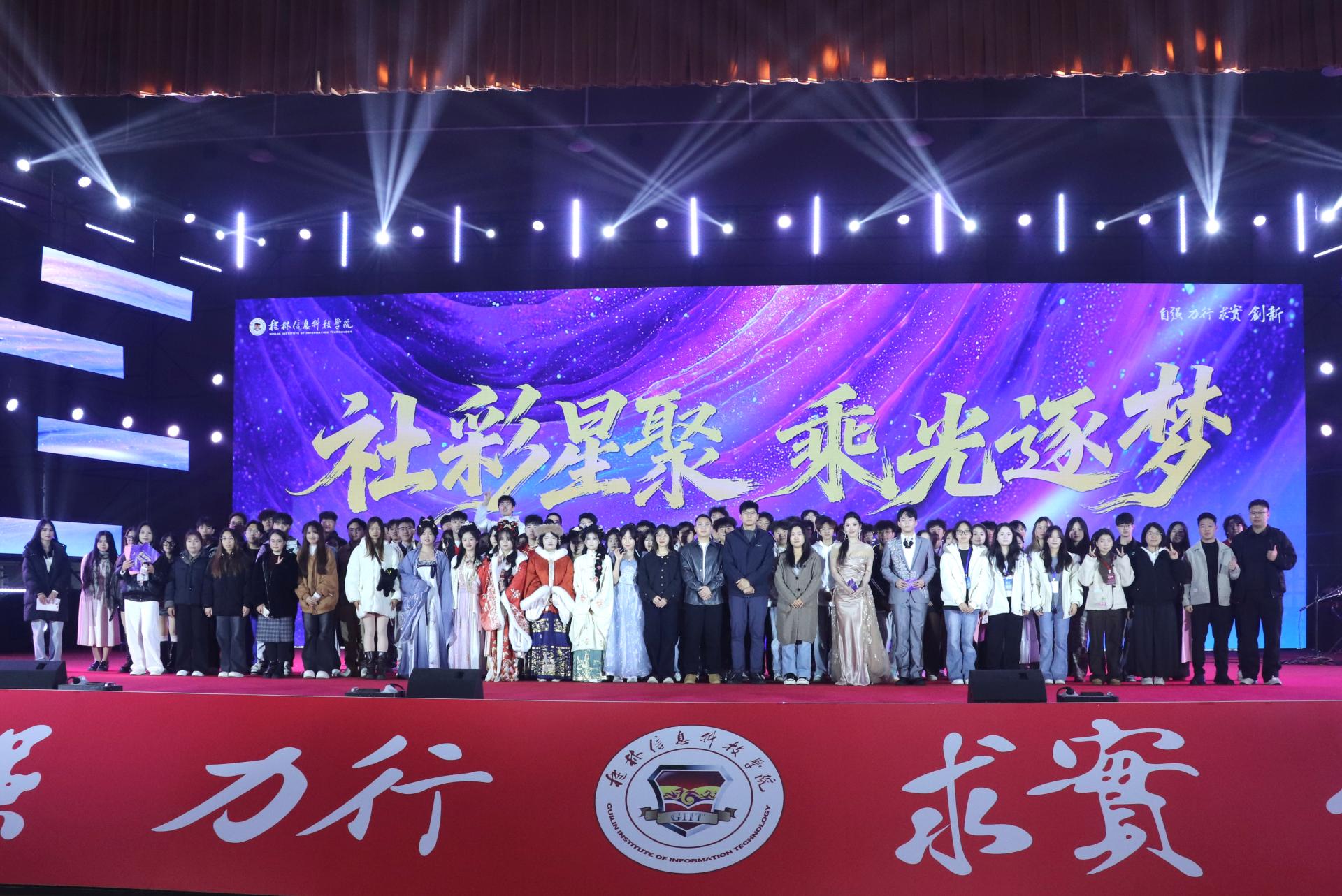 12月21日晚,学校第二届社团嘉年华晚会圆满落幕。本届晚会以“社彩星聚 乘光逐梦”为主题,由校团委主办,汇聚了全校各类学生社团的创意表演,吸引近千名师生共同参与。校团委周阳霖、各学院团委负责同志及其他兄弟院校代表出席了活动。