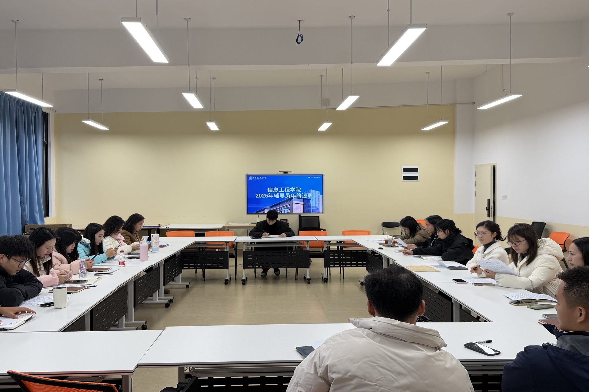 为进一步加强辅导员队伍建设,总结凝练工作特色,12月24日,信息工程学院在B503开展2025年度辅导员述职大会。本次会议由学院党委副书记马金博主持,学院党委书记郭健及全体辅导员参加。