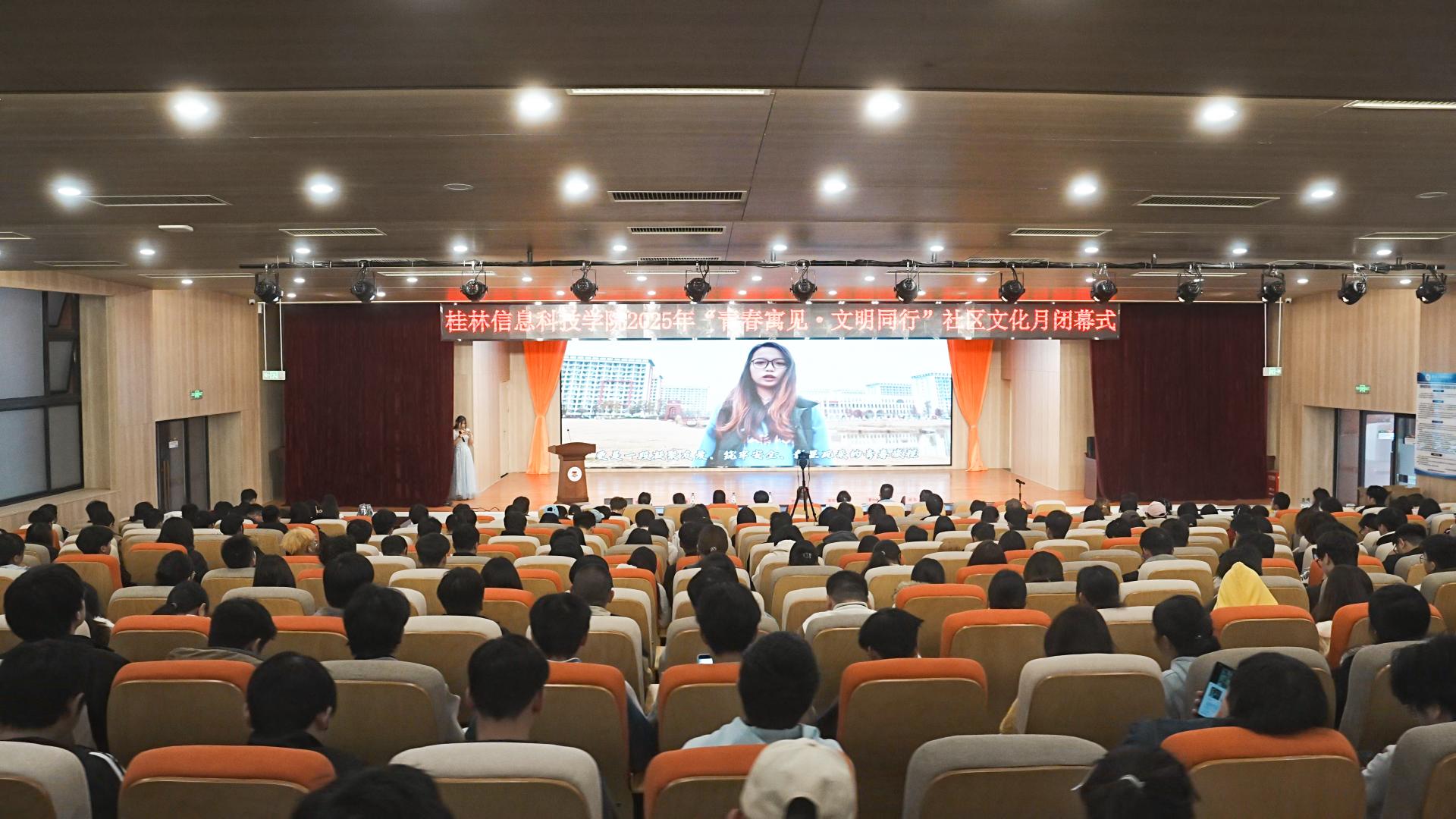 近日,桂林信息科技学院2025年“青春寓见·文明同行”社区文化月闭幕式在学校G105报告厅举行。学校学生发展与服务中心、素质素养中心、后勤服务处等部门的领导、老师代表,以及各社区生活老师与数百名学生齐聚一堂,共同见证本次社区文化建设的成果。
