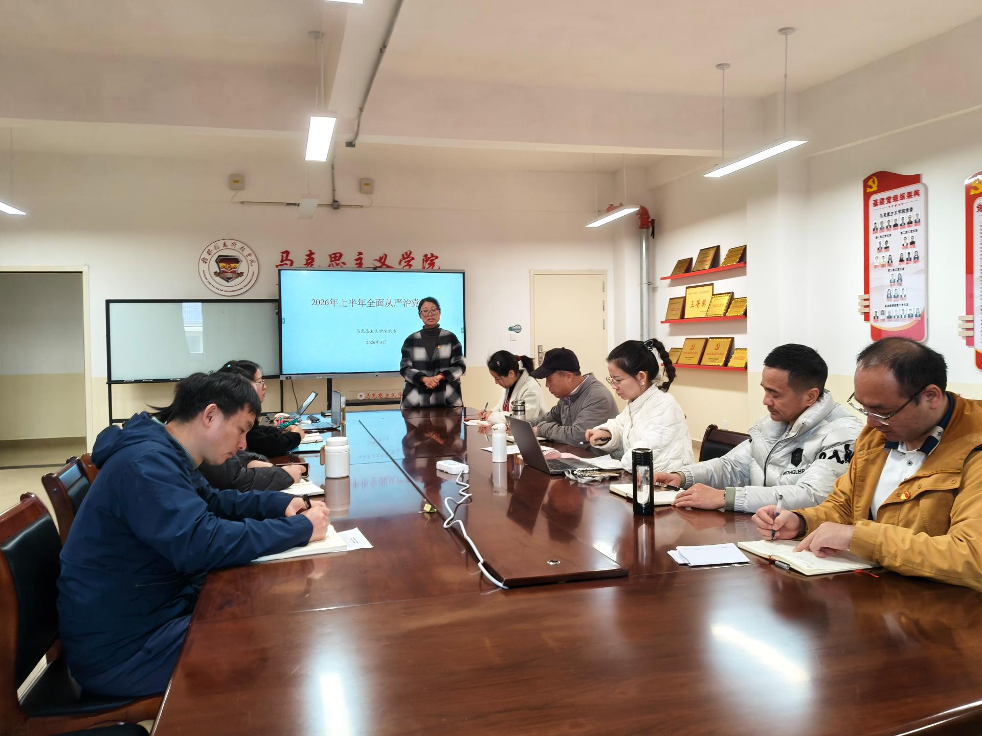 3月6日上午,马克思主义学院党委在G610会议室召开2026年下半年全面从严治党工作会议,会议由党委书记赵奕主持,党委委员及各支部书记参加会议。