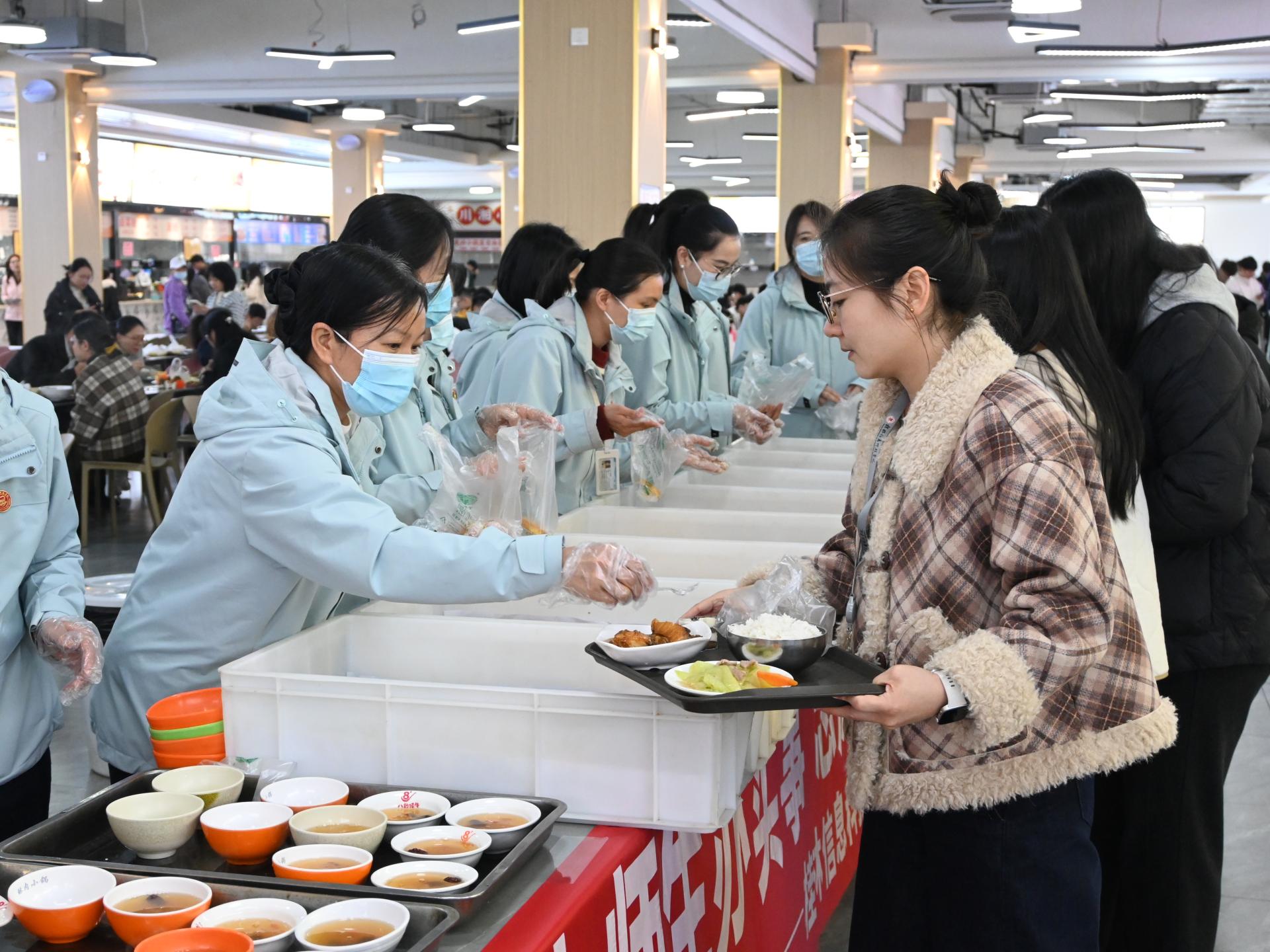在第 116 个 “三八” 国际劳动妇女节即将到来之际,为表达对全校女教职工的诚挚敬意与美好祝福,让辛勤耕耘在教育一线的 “她力量” 感受到校园大家庭的温暖,3 月6日中午用餐时段,学校后勤服务处联合社区第二党支部,在食堂三楼教工窗口开展 “书香伴蜜香・岁月更甜蜜” 主题慰问活动,用美味与温情为女教职工们解锁专属幸福。