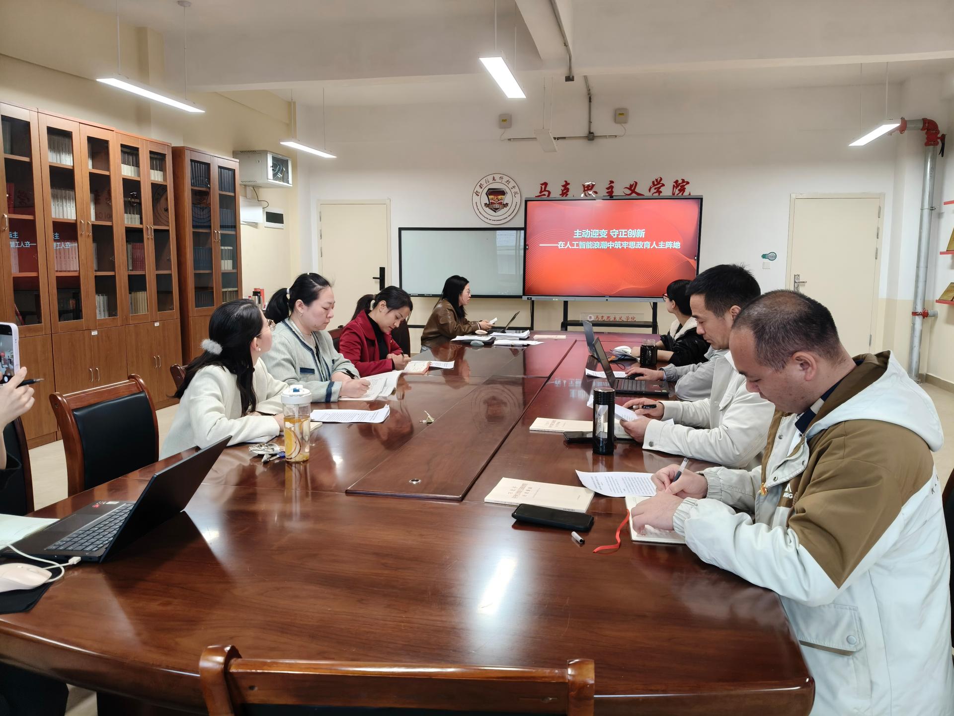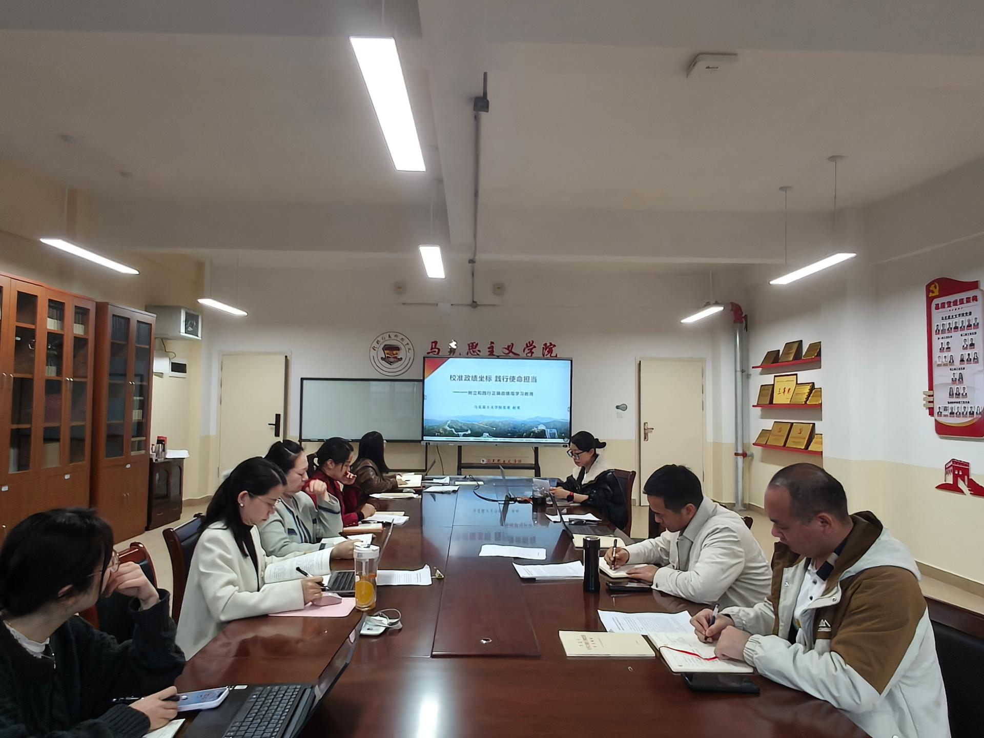 3月17日下午,马克思主义学院党委理论学习中心组在G610会议室召开2026年第一次集中学习(扩大)会议,会议由党委书记赵奕主持,党委理论学习中心组成员、各党支部书记及组织员参加会议。