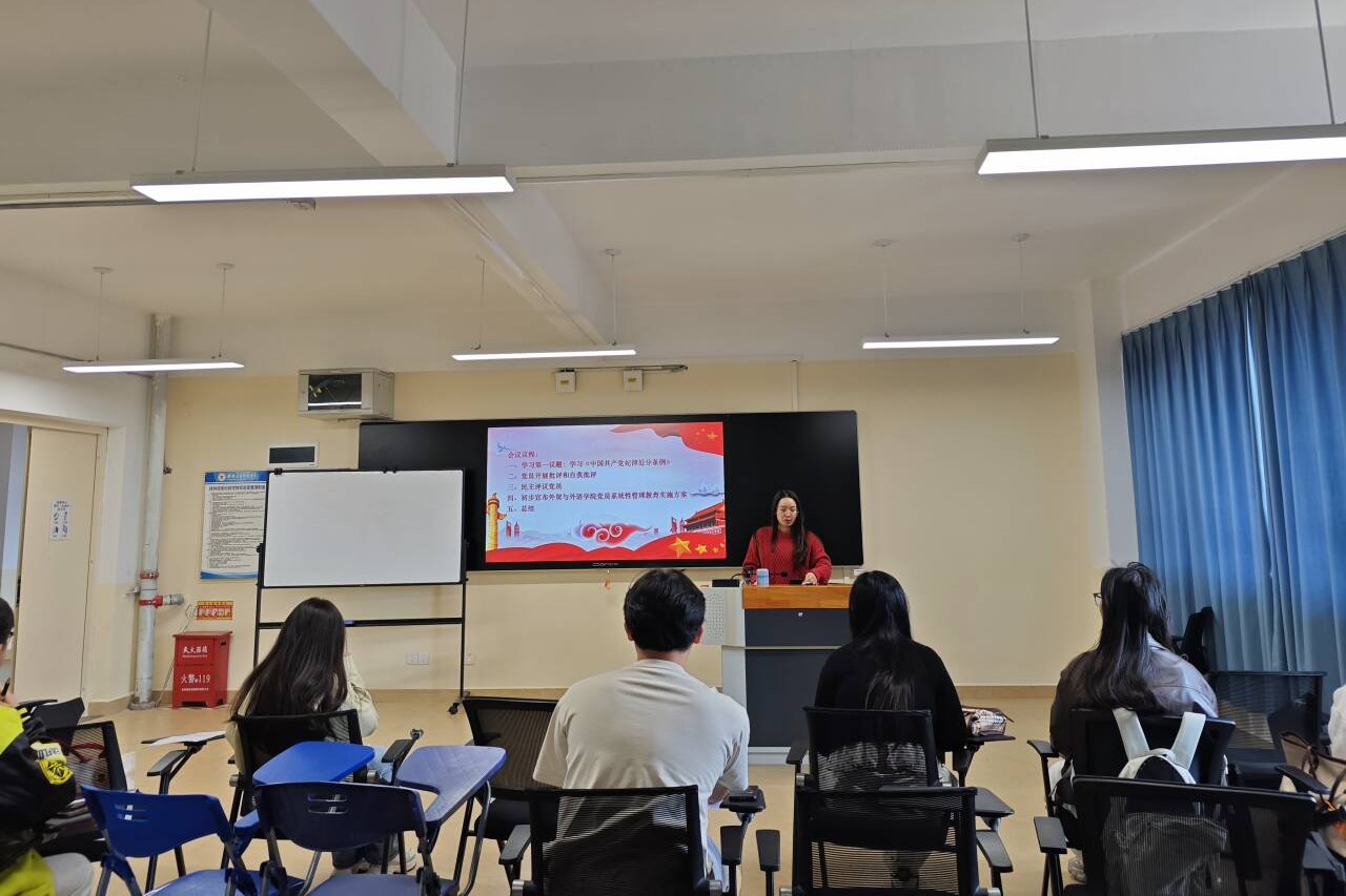 外贸与外语学院第一教工党支部会议现场