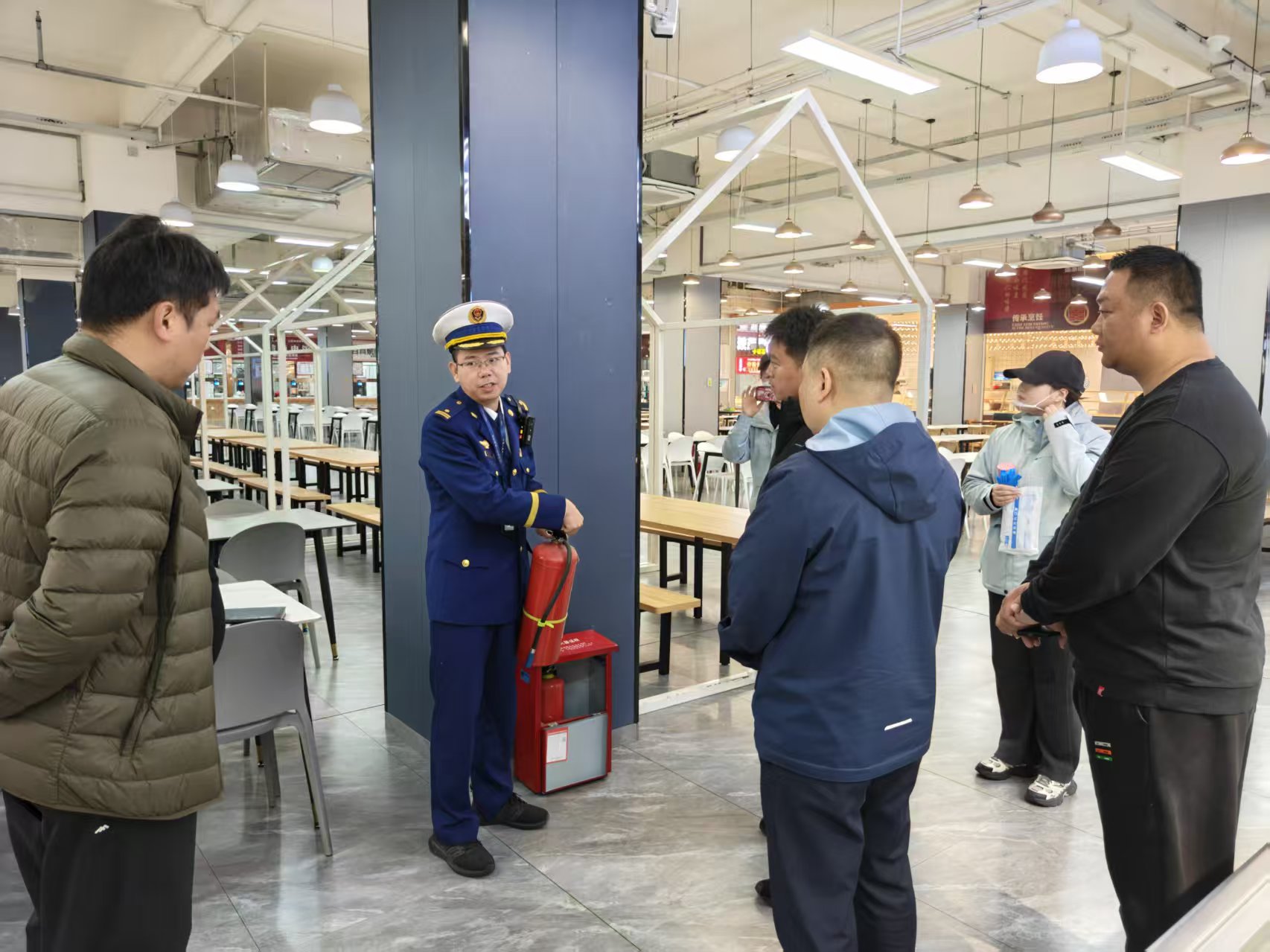 检查过程中,检查组坚持“检查与宣教并重”的原则,将防火宣讲课堂搬到了工作一线。在食堂后厨,消防站工作人员结合食堂油污重、用电频繁的特点,向从业人员现场讲解了油锅起火、线路起火的应急处置方法,并强调了定期清洗烟道、规范用火用电的重要性。