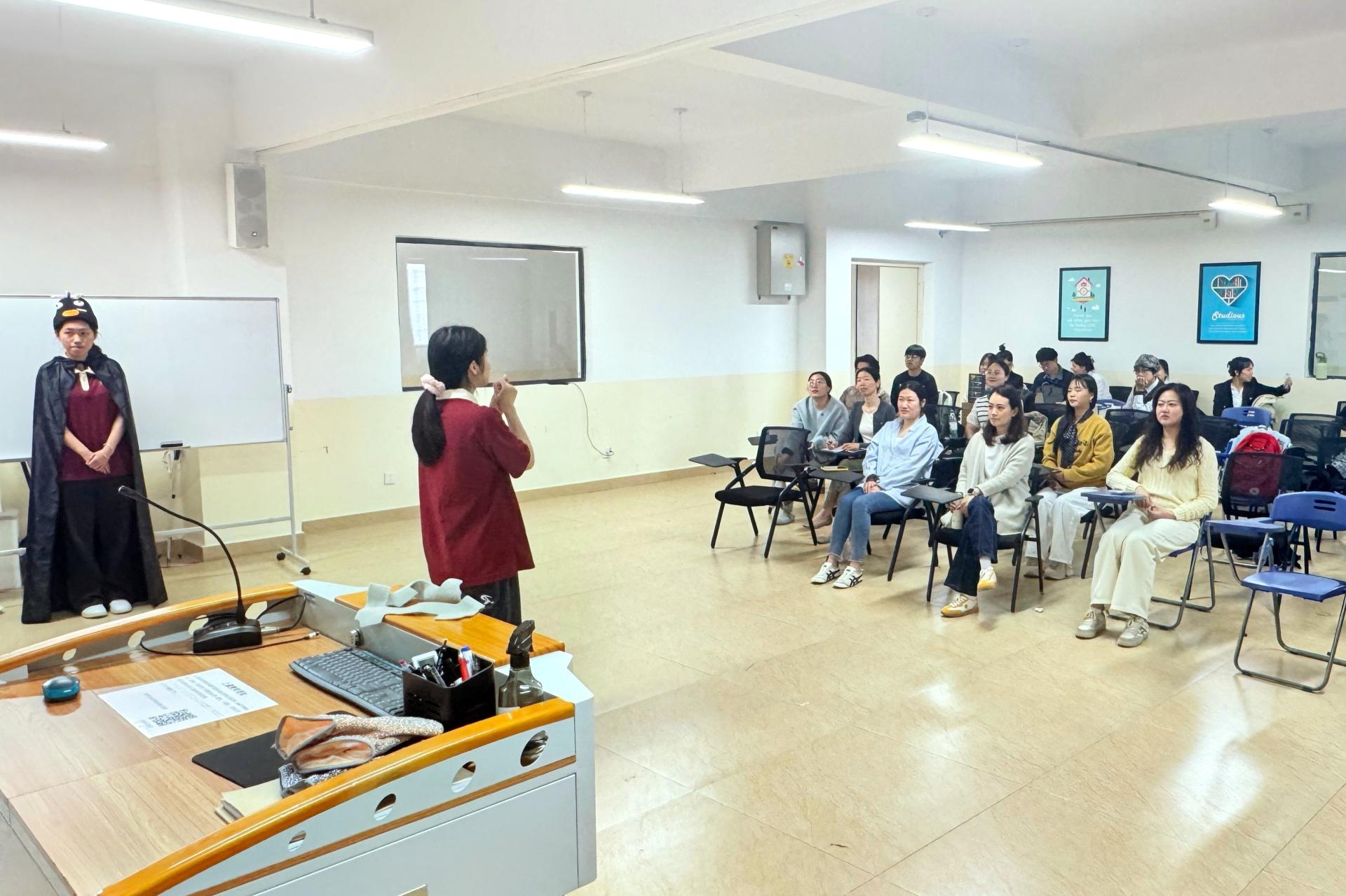 本次培训紧扣竞赛规则与评分标准,围绕展会贸易赛道的新产品发布会和商贸配对贸易谈判两大核心环节展开。在发布会演练环节,两支参赛队伍依次进行全英文产品展示,指导团队教师从仪容仪表、语音语调、产品定位、卖点提炼、表达逻辑到PPT视觉呈现逐一进行了细致点评。在模拟谈判环节,老师们化身专业国外采购商,围绕产品介绍、价格磋商、交付周期、售后服务等常见外销议题,全面检验参赛学生的应变能力与商务礼仪。李靖航和唐清华两位老师分别从谈判策略、英文口语表达、贸易知识等方面进行拆解指导,帮助学生理清谈判脉络,参训学生纷纷表示获益匪浅。