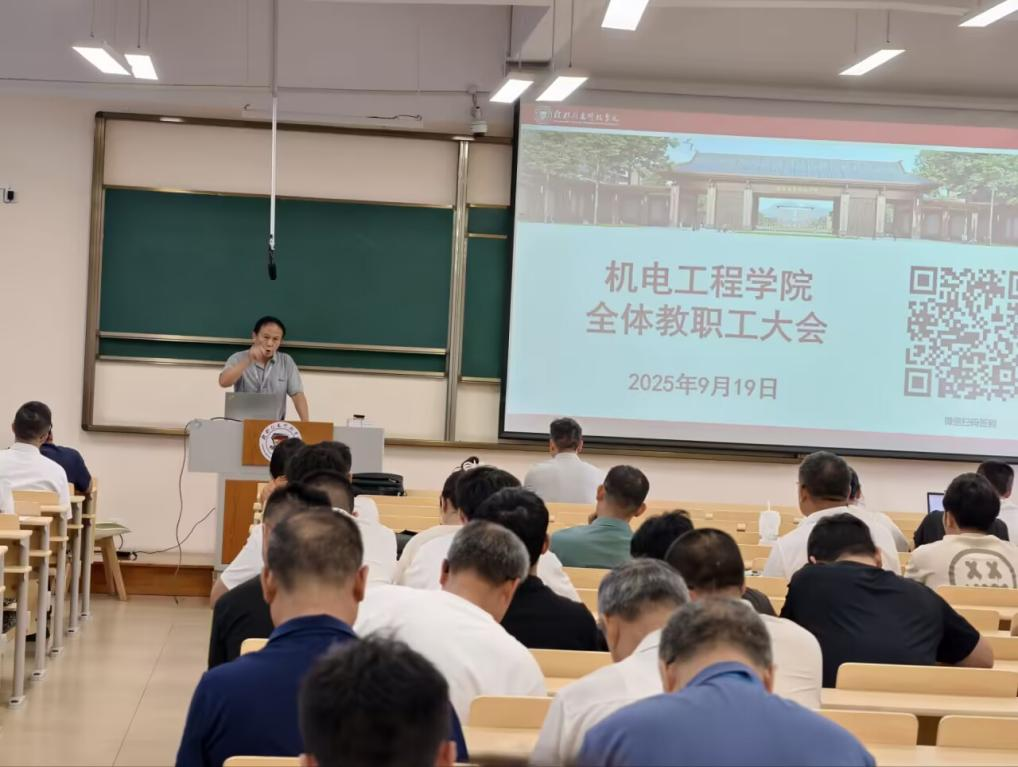 为深入贯彻学校本科教学工作合格评估整体部署,进一步压实工作责任、细化任务分工,确保在理论教学质量、实践教学成效、校园文化建设等核心评估指标上实现突破,9月19日,机电工程学院在D509召开全体教职工会议,会议由学院院长胡国文主持。