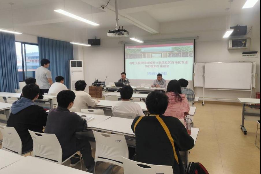 2026年4月16日,机械设计制造及其自动化专业2023级师生座谈会在J708教室举行。本次座谈会旨在加强师生交流,倾听学生心声,解决教学过程中存在的实际问题。教研室主任和23级各班的学生干部进行了面对面交流,广泛听取了同学们在教风建设、教风管理和教学保障等方面的意见与建议。会上,学生代表积极发言,围绕课程安排、教学设施、师资沟通等方面提出了若干建设性意见,主要包括: