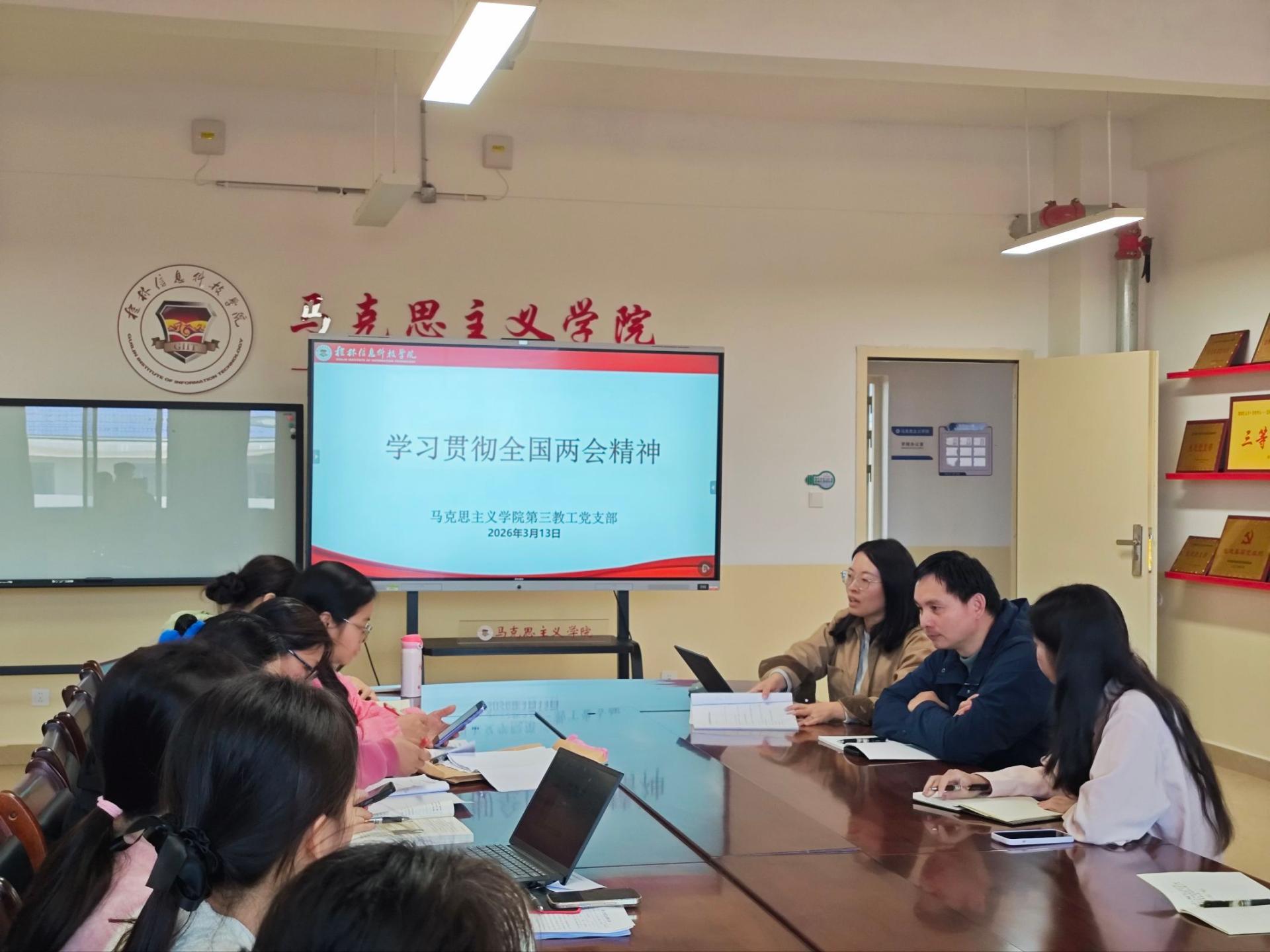 3月13日,马克思主义学院第三教工党支部在G610会议室开展全国两会精神专题学习会。