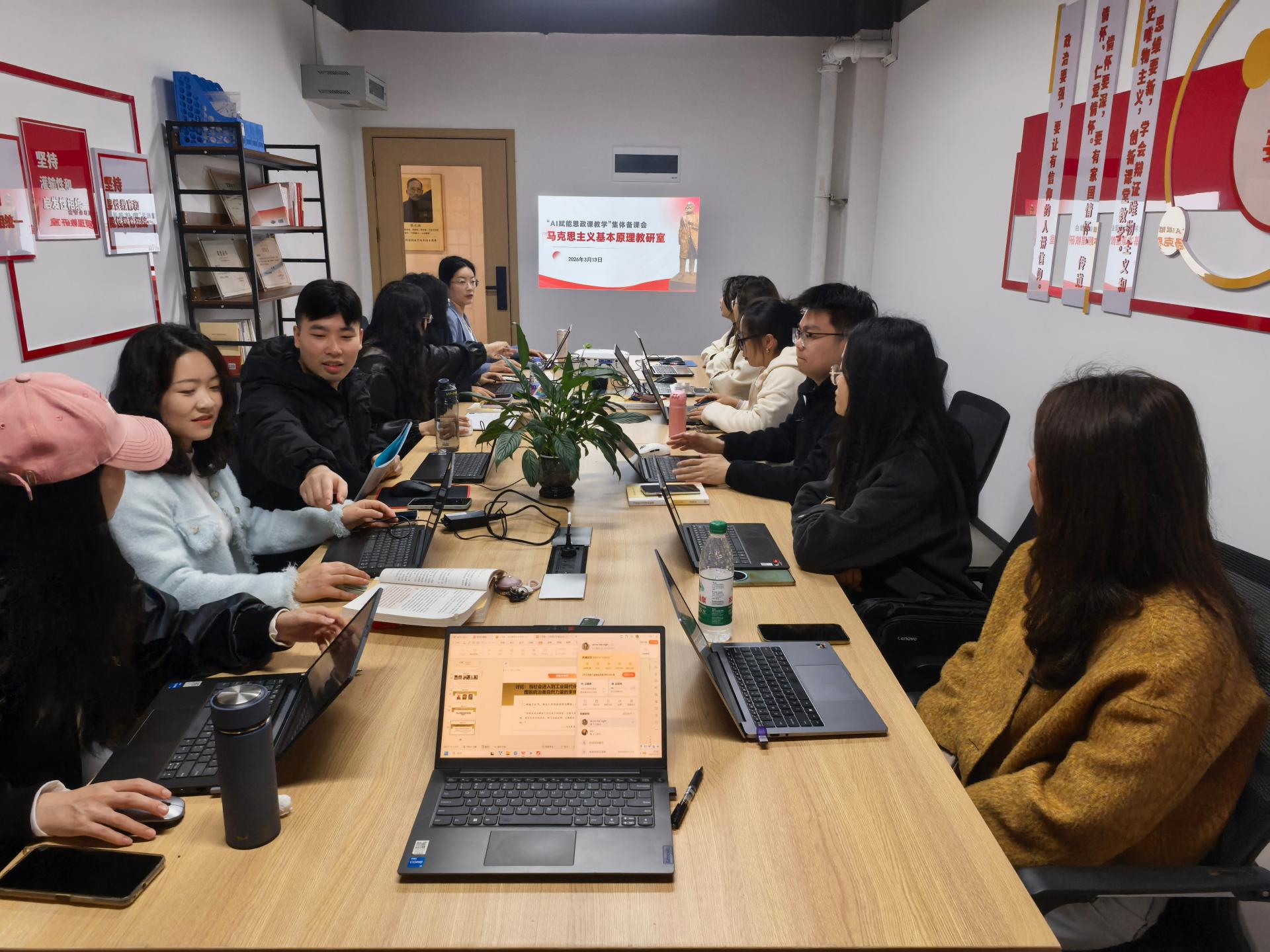 为深入推进新时代人工智能技术与思想政治教育融合创新,以技术赋能推动思政课高质量发展,3月13日,马克思主义基本原理教研室在知行楼707工作坊开展“AI如何赋能思政课教学改革”集体备课会。会议由教研室主任任海艳主持,教研室全体教师参加。
