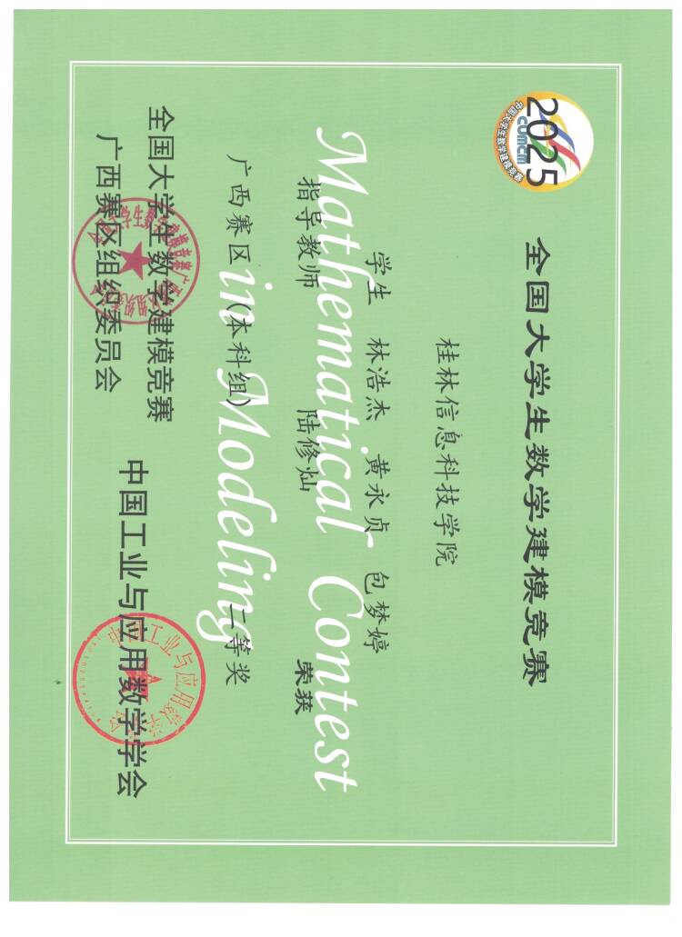 近日,2025年全国大学生数学建模竞赛颁奖典礼暨工作会议在广西师范大学召开,该赛事创办于1992年,每年一届,已成为全国高校规模最大的基础性学科竞赛,也是世界上规模最大的数学建模竞赛。2025年全国共68311支队伍参赛,我校学生队伍凭借出色的团队合作和扎实的数学功底,荣获广西赛区一等奖3项、二等奖4项、三等奖10项的优异成绩。