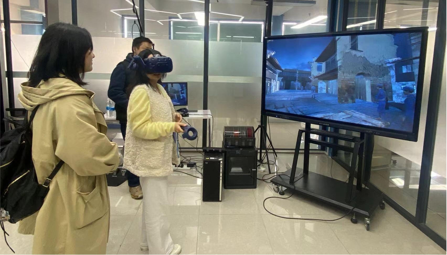 活动中,“双带头人”教工党支部书记、支部委员参观了企业研发中心与产品展示区,亲身体验了虚拟现实工业培训系统、文化遗产可视化平台等创新应用。技术人员现场演示讲解,使教师们对VR技术在教育、文化、工业等领域的应用前景有了更深入的理解。在随后的座谈会上,双方围绕党建引领协同育人、课程思政建设、产业需求对接等议题展开交流,并就加强党组织纽带作用、探索“党建+业务”合作模式达成共识。