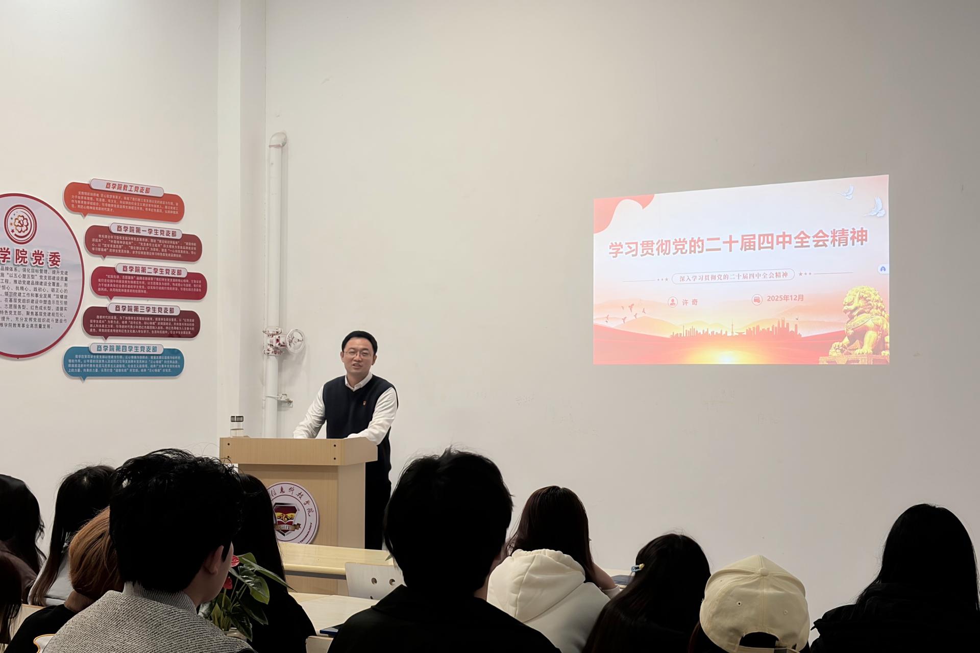为深入学习贯彻党的二十届四中全会精神,切实筑牢青年学子的思想根基,12月12日,学院党委书记许奇在崇德楼学生社区党员活动室,为学院党员学生、发展对象及青马学员讲授专题党课。