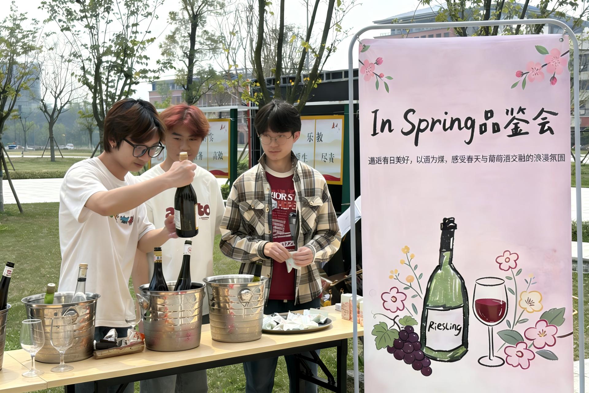 3月26日下午,由外贸与外语学院主办、三毫米葡萄酒协会承办的“In Spring”葡萄酒品鉴会在校园食堂前广场温情启幕。活动紧扣春日主题,打破传统文化科普的枯燥模式,将专业知识讲解、沉浸式味蕾品鉴与轻松趣味互动融为一体,为全校师生打造了一场格调雅致、氛围温馨的校园文化盛宴,尽显校园文化多元魅力。