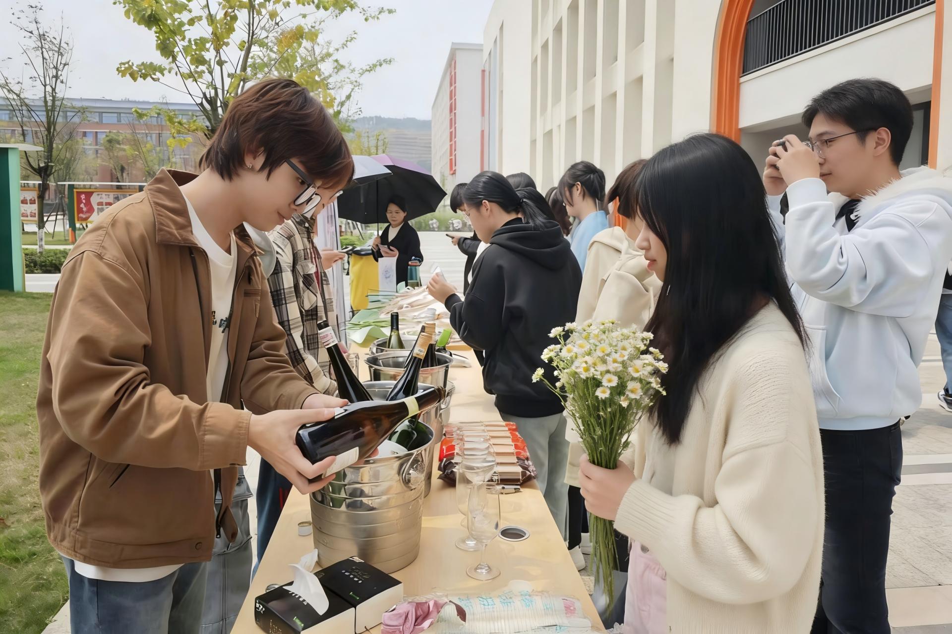 现场以清新春日花艺精心布置场地,营造出浪漫又治愈的品鉴氛围,成为校园里亮眼的打卡点位,师生们闲暇之余纷纷驻足拍照,定格美好瞬间。与此同时,现场还开设鲜花花束、惊喜盲盒领取环节,让参与师生收获春日小惊喜,在花香与酒香中自在交流、以酒会友。
