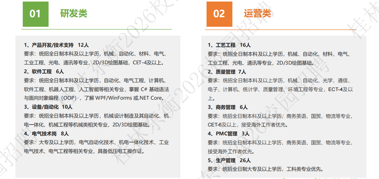 公司本次将开放涵盖开发、生产、工艺、质量、设备等方向的岗位,详情见下图。