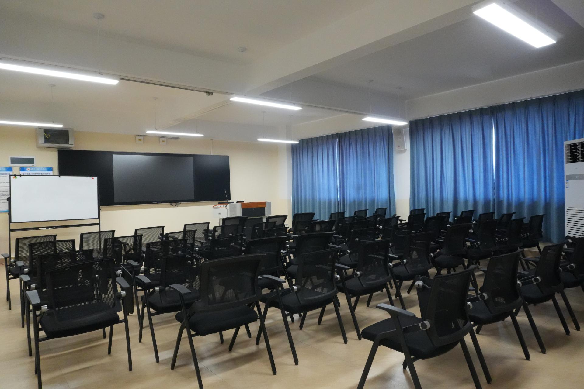 英语语言教室Ⅰ配置有欧帝智慧黑板,安装了多媒体教学系统等相关软件,配有可自由移动桌椅,适合进行分组式的英语教学。承担《实用交际英语口语》《英语演讲》《英语辩论》《跨文化交际》《中国文化与跨文化交流》《跨文化商务沟通》《国际商务谈判》等英语、商务英语专业相关课程教学任务。