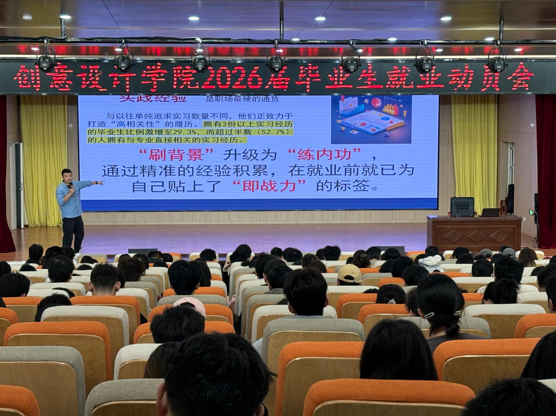 创意设计学院召开2026届毕业生就业动员会为引导毕业生科学研判就业形势,明确职业发展方向,11月12日,创意设计学院在博文楼F107报告厅召开2026届毕业生就业动员大会。学院党总支书记范恒祯出席会议并作动员讲话,全体毕业班辅导员及毕业生参加。会上...