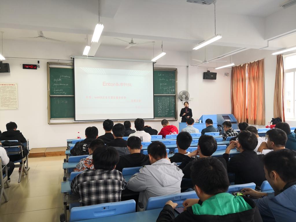 在宣讲会上,南宁易唐科技中心主任左洁从公司概况、企业文化、企业员工培养模式、企业目前的发展情况及招聘需求这五个方面向学生进行详细的介绍,让同学们从多方面了解南宁易唐科技有限公司,最后同学们就自己关心的就业问题和左主任进行了积极互动交流。