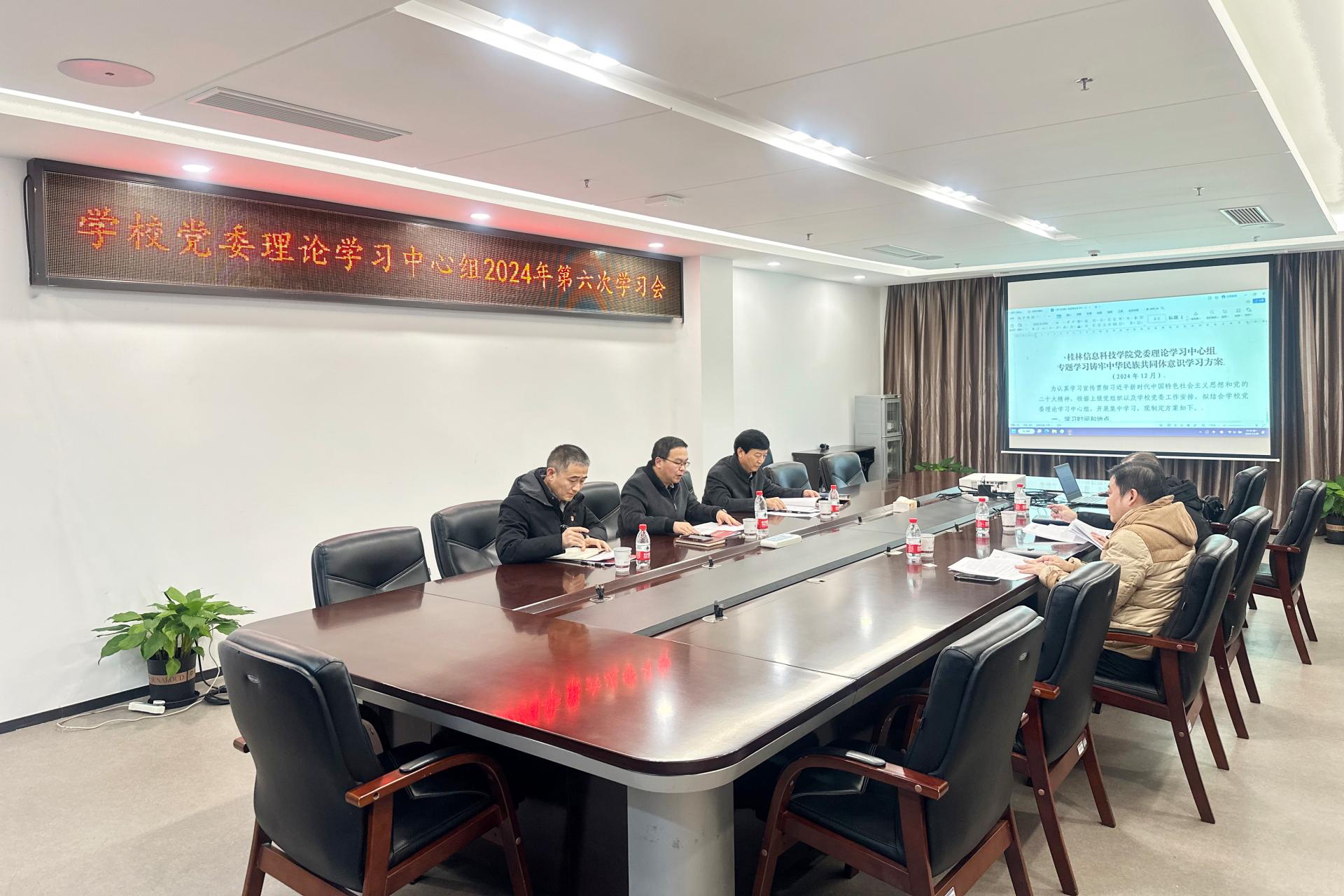 12月30日下午,学校党委理论学习中心组在804会议室召开学习会,专题学习铸牢中华民族共同体意识。党委理论学习中心组全体成员参加学习会,会议由学校党委书记甘勇主持。