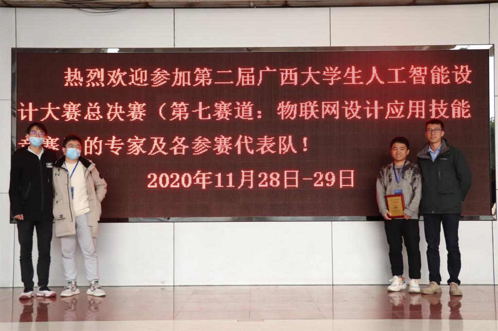 本次比赛共有来自35所高校的1976支参赛队。在智能机器人赛道中,由莫永华老师指导的学生队伍获得一等奖1项、三等奖4项;在物联网设计应用技能赛道中,由唐欣老师、全刘辉老师指导的学生队伍荣获一等奖1项,这是我院在广西大学生人工智能设计大赛中首次获得一等奖,其中我院是在物联网设计应用技能赛道中唯一获奖的独立学院。