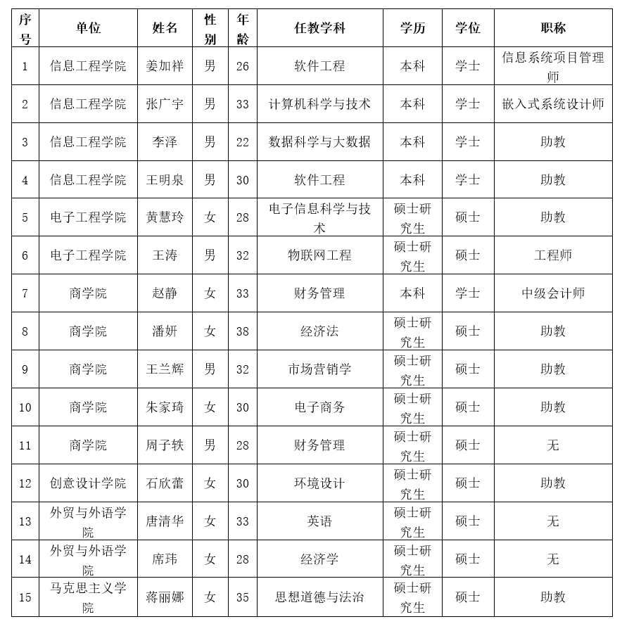 根据有关文件精神,经教师个人报名、教学单位推荐、学校审核,拟推荐姜加祥等15名教师参加2022年广西高等学校青年教师教学业务能力提升培训。